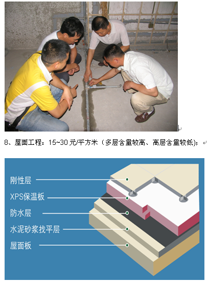 7、室内水电安装工程(含消防):60~120元/平方米(按小区档次,多层略低一些);
